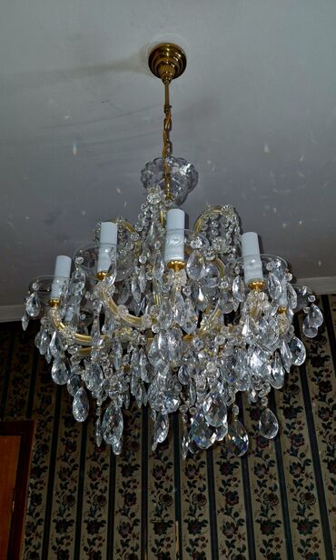 18 şamlı çexski lüstür. heç bir yerində deffekt, sınığı yoxdur. tam yaxşı vəziyyətdə işləyir. bütün çıraqları işləyir .