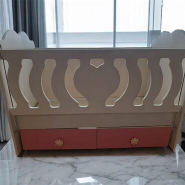 Uşaq beşiyi – çəhrayı-ağ rəng kombinində, funksional model. Xüsusiyyətlər: - Sürgülü yan qoruyucu barmaqlıqlar (yuxarı-aşağı hərəkət edən mexanizm). - Beşiyin altında 3 ədəd geniş sürgülü çekmece ...