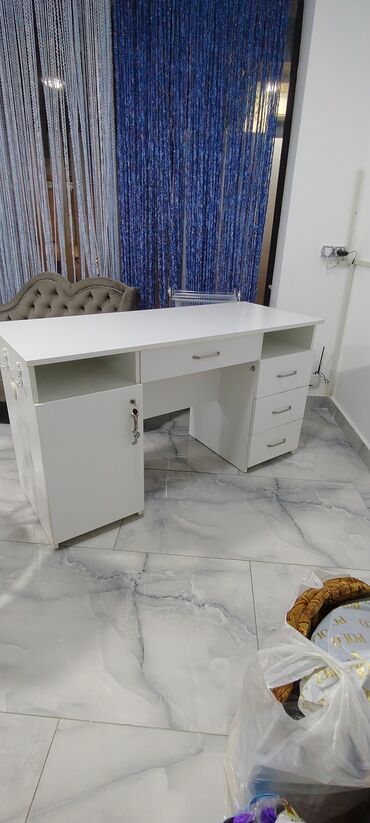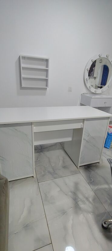 Ofis/iş masası – ağ və ağac teksturalı kombinə edilmiş dizayn - Geniş