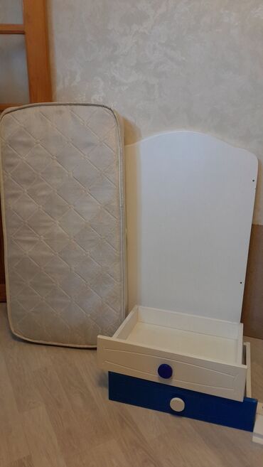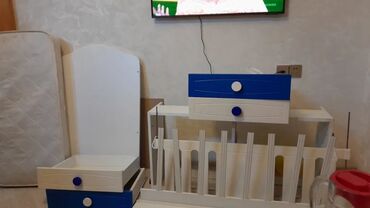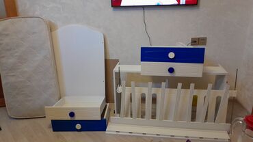 Oval və yumru formalı ağ uşaq beşiyi komplekt Uşaq yatağı az yatılıb yay qış üzlü matras(tək matras 170 AZN alınmışdı)üzərində 2 prostinya 2 ədəd yastıq yataq qırağı hörük və chikko firmasınnan fı...