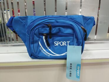 Mavi rəngdə, idman üçün nəzərdə tutulmuş bel çantası. Üzərində əlavə