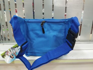 Mavi rəngdə, idman üçün nəzərdə tutulmuş bel çantası. Üzərində əlavə cibləri var. Kiçik əşyalarınızı daşımaq üçün idealdır. telefon saxlamaq yeni
