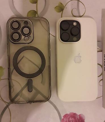 - 2 ədəd qoruyucu örtük: ağ silikon kabura və şəffaf MagSafe-li kabura (kamera modulu üçün ayrıca halqa qoruyucusu ilə)
