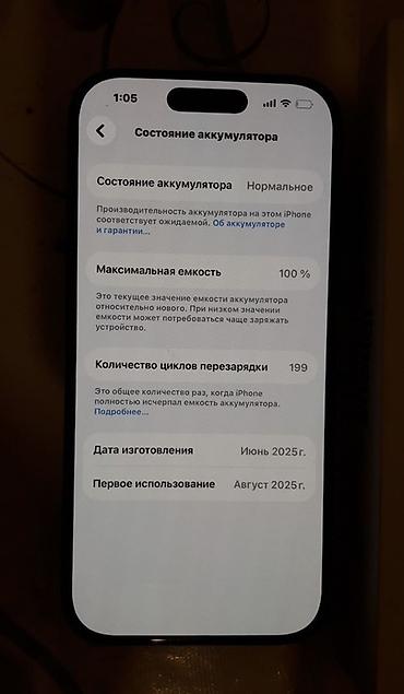 iPhone 15 Pro Max • Yaddaş: 256 GB • Batareyanın vəziyyəti: 87% • Telefon yaxşı vəziyyətdədir, problemsiz işləyir • Face ID, kameralar və dinamiklər tam işləkdir Qiymət: 1300