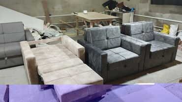 Mavi rəngdə yumşaq toxumalı divan və bir nəfərlik kreslo dəsti. Xüsusiyyətlər: - Açılan mexanizm: divan asanlıqla iki nəfərlik yatağa çevrilir - Bazalı: iç hissəsində əşyalar üçün geniş saxlama bö...