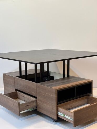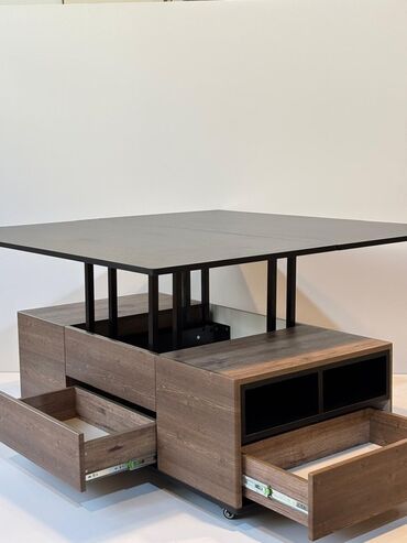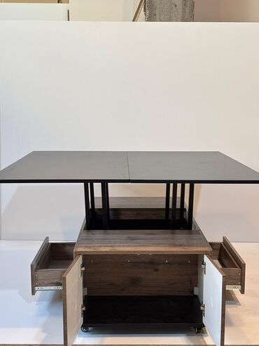 Transformasiya olunan qaldırılan masa Alınıb istifadə olunmayıb təzədir. - Mexanizmlə qaldırılıb böyüyən transformasiya edilə bilən masa: aşağıda çay/qəhvə masası kimi, qaldırıldıqda isə yemək/iş ...
