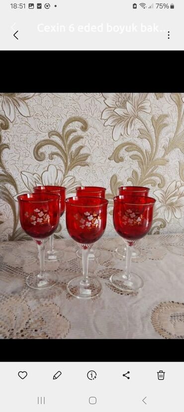 Xrustal bogema bakal teze oz qutusunda etiketleri hamisinin uzerindedir son qiymetdir tutumu 350 ml hundur ve boyukdur cehizlik ve hediyyelik ucun cox gozeldir.6 ededi 40 12 eded var.