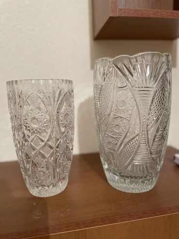 Çexoslavakiya xrustalı vazalar köhnənin ideal vəziyyətdə hamsı kutudan cxardılıb köhnənin mallidı, xrustalı təm təbii 1 ədəd 30 sm- 20 azn, 1 ədəd 22 sm - 20 azn