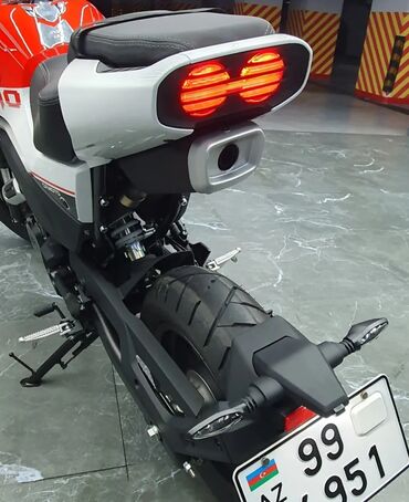 Qırmızı rəngli,1 cüt oturacaqlı 2 Nəfərlik motosiklet. Sürücüyə rahatlıq üçün arxa hissəsində yük yeri var. Ön təkərlərində metal qoruyucu, arxa təkərlərində isə qara metal qoruyucu yerləşdirilib. ...