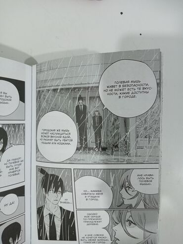 - Kitabın arxa üzündə hekayə xülasəsi rus dilində verilib, personajlar Denji, Aki, Makima və s. ilə səhnələr mövcuddur.