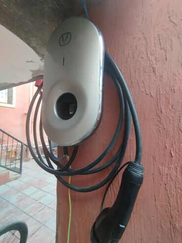 EV divar tipli şarj qurğusu (wallbox) komplekti - Rəng: boz/gümüşü korpus - Divara quraşdırma üçün nəzərdə tutulmuş kompakt dizayn - Uzun və qalın kabel, pistolla birləşdirilmiş - Qutuda: əsas şar...