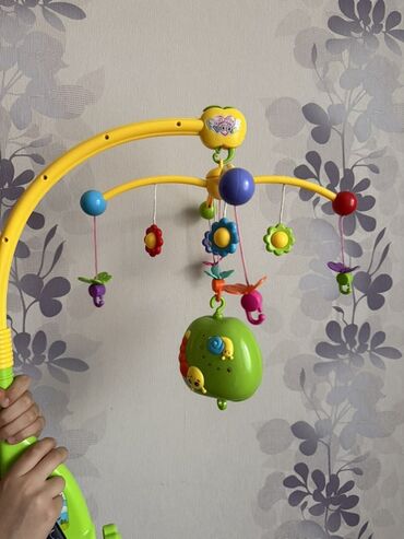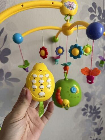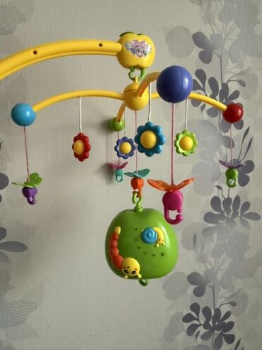 Uşaq krovatı üçün musiqili oyuncaq. Çox baha alınıb, keyfiyyəti əladır. İstifadə olunmayıb. Şəkillərdən materialın keyfiyyəti və gözəlliyi görünür. Əldə daha da gözəl və parlaqdır. Pultla idarə olunur. 60-dan çox sakitləşdirici və klassik musiqiləri var. Həmçinin fırlanır.