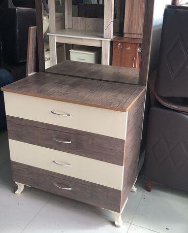 Yüngül rəngli, üç çekmeceli və güzgülü komod. Yataq otağı və ya qonaq otağı üçün əlverişli mebeldir. Çekmeceler əşyaların saxlanılması üçün geniş yer təklif edir. Güzgü makiyaj etmək və ya sadəcə g...