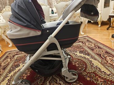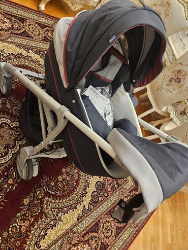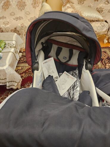 Az istifadə olunub. Chiccodan alınıb. Səliqəlidir. Yenisi çox bahadır. Maşın üçün oturacağı var. İnternetdən maraqlana bilərsiniz uşaq arabasının qiyməti və funksiyaları barədə. Çantası və yağış üçün örtüyü də var.