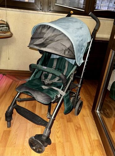 Uşaq arabası – qatlanan, yüngül və kompakt model - Brend: Chicco (etiketdə görünür) - Çərçivə: yüngül metal konstruksiya, möhkəm şassi - Təkərlər: dörd cüt plastik təkər, asan yönləndirmə və stabi...
