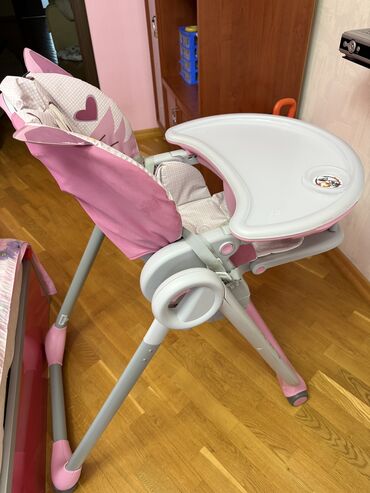 Uşaq yemək stulu – Babyton - Brend: Babyton - Rəng: bənövşəyi/qızılı naxışlı oturacaq, ağ karkas - Funksiya: yemək üçün çıxarıla bilən geniş stolça - 2 ədəd fincan/qab yuvası - Asan yuyulan ha...