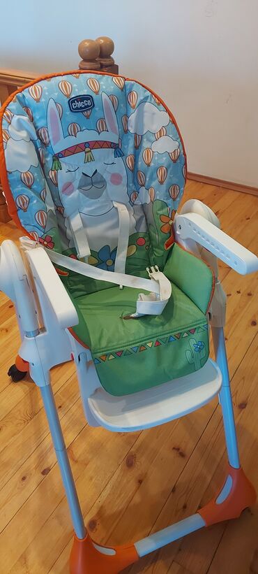 Ev və restoran istifadəsi üçün praktik seçim, körpənin qidalanmasını rahat və təhlükəsiz edir. Rəngi: ağ–narıncı çərçivə, yaşıl oturacaq.