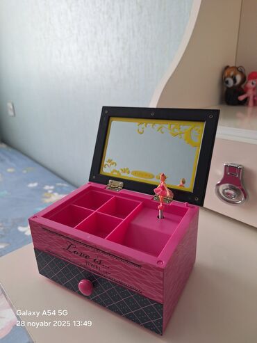 Zərgərlik qabı – kompakt və zərif dizayn - Rəng seçimləri: krem, çəhrayı, yaşıl, boz - Material: xarici hissə dəri teksturalı, daxili yumşaq süet tipli astar - Metal detallar: qızılı/rose-gold rən...