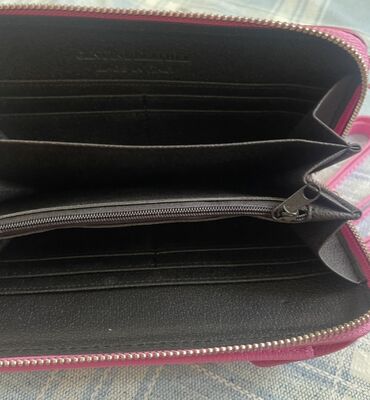Çəhrayı rəngdə, dəri materialdan hazırlanmış bu portmone həm zərif, həm də funksionaldır. O, kartlar, nəğd pul və digər kiçik əşyalar üçün geniş saxlama sahəsi təklif edir. Portmone qızılı metal detallarla tamamlanmışdır və möhkəm fermuar bağlanmasına malikdir. İki ədəd əlavə kəmər ilə istifadə rahatlığı təmin edir, bu da onu həm gündəlik istifadə, həm də xüsusi hallar üçün ideal seçim edir. Dəbli dizaynı və praktiki xüsusiyyətləri ilə bu portmone qadınların ehtiyaclarını qarşılamaq üçün nəzərdə tutulmuşdur.