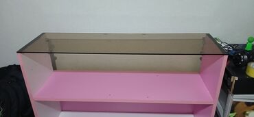 Şüşə bölməli mağaza rəfi - Material: qalın şüşə bölmələr və
