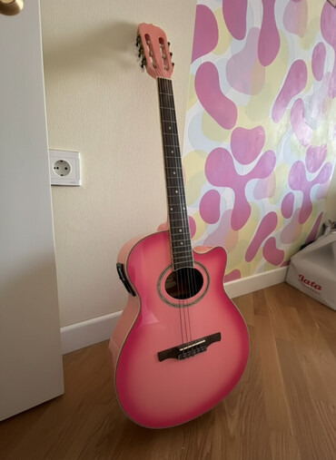Klassik/akustik gitara – cutaway (yuxarı deşikli) korpuslu model. Xüsusiyyətlər: - Korpus: parlaq laklı, ön panel açıq rəngli ağac, yan və arxa hissə qəhvəyi tonlarda - Cutaway dizayn – yüksək pər...