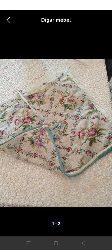 - Dizayn detalları: kənarları biçilmiş, naxışlı səth, şəkillərdə iki fərqli güllü variant göstərilir