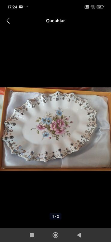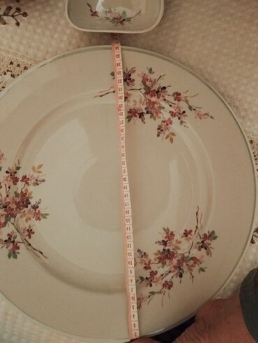 - Ölçü: böyük dairəvi boşqabın diametri təqribən 32 sm (şəkildə ölçü lentilə göstərilib).
