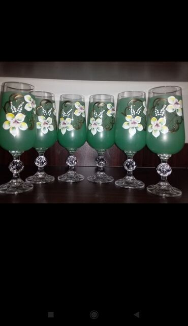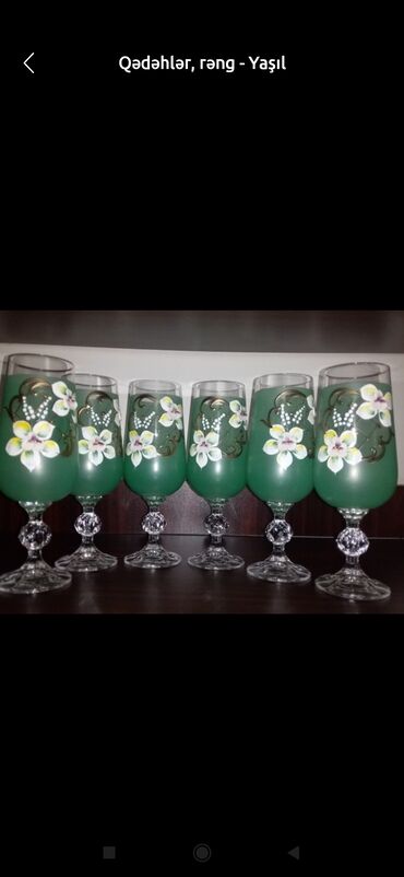 Qədəhlər, rəng - Yaşıl, Şüşə, 6 ədədli dəst