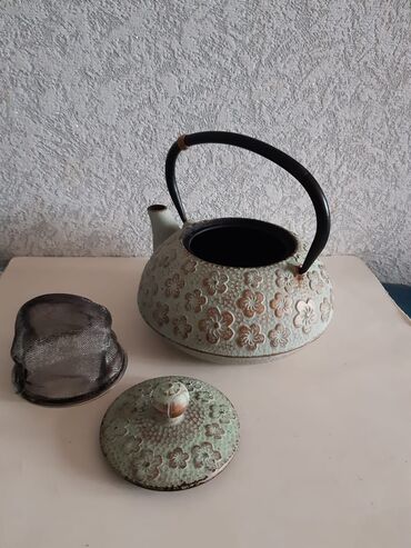 Dəmir çaydan (tetsubin üslubunda), çiçək rellef naxışlı