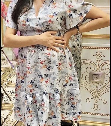 Açıq mavi rəngli, çiçək naxışlı, qısaqol don. Donun bel hissəsi elastikdir və rahat oturması üçün yığılıb. Yaxa hissəsi V-şəklindədir və donun ətəyi büzməli dizayna malikdir. Yay ayları üçün idealdır.