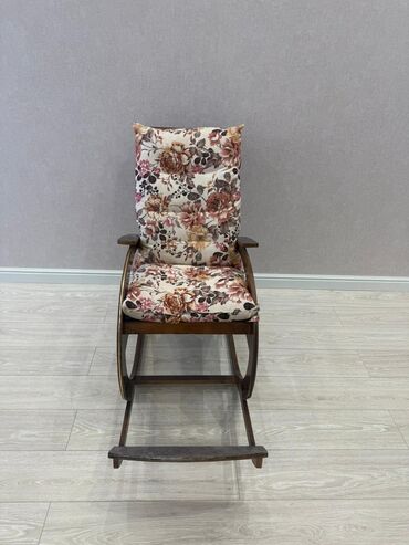 EndirimsizTaxta yellənən kreslo, qəhvəyi rəngdə taxta konstruksiyaya və çiçək naxışlı yumşaq oturacaq və arxalıq yastıqlarına malikdir. Kreslonun rahat yellənmə mexanizmi və inteqrasiya olunmuş ayaqaltısı var. Yanlarda qoltuqaltıları mövcuddur. Bu kreslo dincəlmək və ya kitab oxumaq üçün uyğundur.