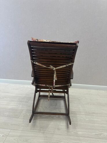 Taxta yelləncək kreslo - Material: tünd rəngli ağac konstruksiya, möhkəm taxta lamellər. - Dizayn: klassik yelləncək forması, geniş qövs formalı ayaqlar və ön hissədə ayaq dayağı. - Oturacaq və be...Giriş•Qeydiyyat