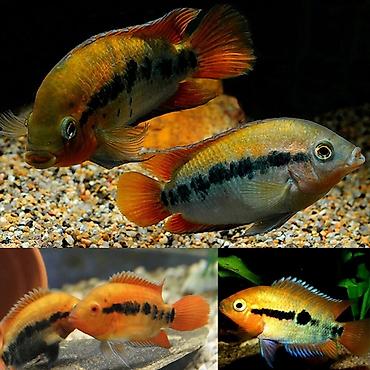 Məhsul: Firemouth/Black-barred cichlid (Amatitlania sp., “T-bar”/“Black convict” xətləri ilə oxşar), akvarium balığı