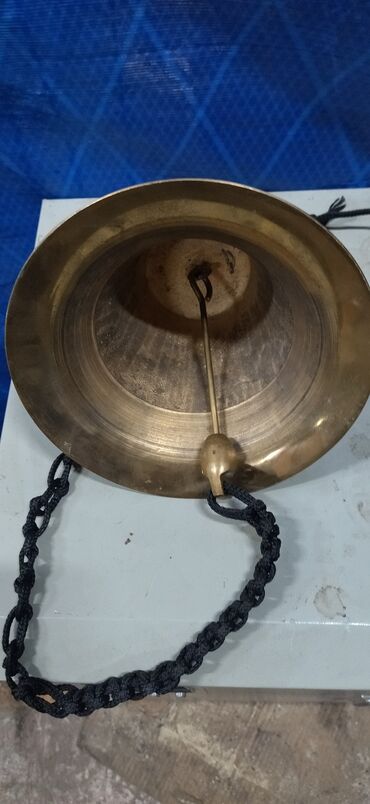 Komplekt: bürünc zəng, daxili dil, üst zəncir və çalma üçün toxunmağı rahatlaşdıran qara kəndir.