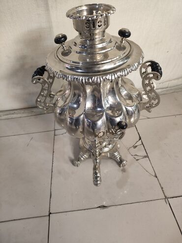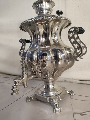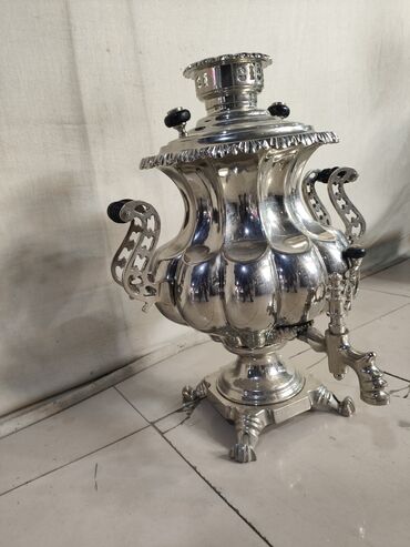 Şüşə kimi parlaq metal korpuslu klassik samovar