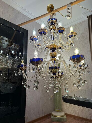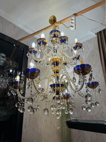 Klassik üslubda, kristal asqılı tavan lustrası İdeal vəziyyətdədi , 12 işıqlıdı