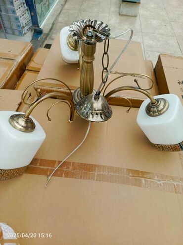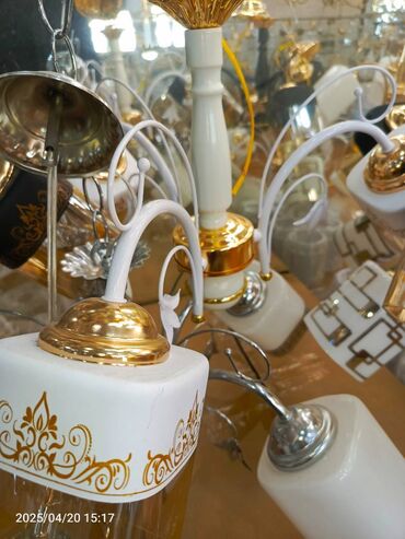 Hər rəngdə,hər formada üçlü çilçıraq, böyük patrondur istənilən lampa bağlaya bilərsiniz, plafonları şüşədir,rayonlara göndərilir,ən ucuz qiymətə