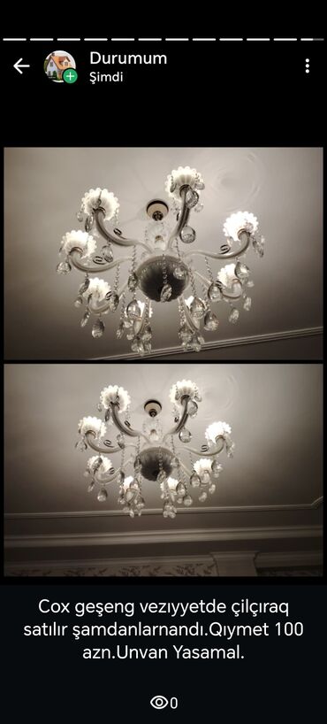 Çılçıraq satılır tam ıdeal vezıyyetdedır.Şamdanlarnandı.Qıymet 100 azn.Unvan Yenı Yasamal.
