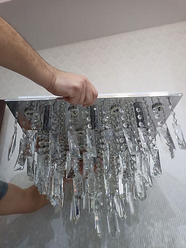 - Dizayn: Kvadrat forma, xrom parlaq əsas, çoxsaylı asma kristal prizmalar və damlalar. Kristallar işığı çoxsahəli qıraraq parlaq effekt yaradır.