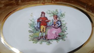 Məbəd naxışlı, ana rəngi mirvari parıltılı porselen süfrə-servis dəsti. Çexiya istehsalı “Leander” (Altrohlau) damğalı. Dəstin tərkibi: - 6 böyük yemək boşqabı (klassik süjetli dekor) - 6 dərin şo...