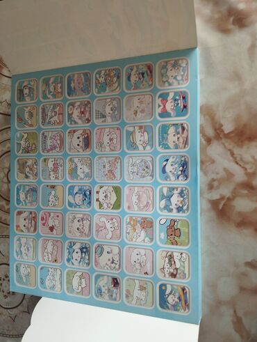 - Mavi fonlu, açılan albom daxilində çoxsaylı kvadrat formalı stikerlər.