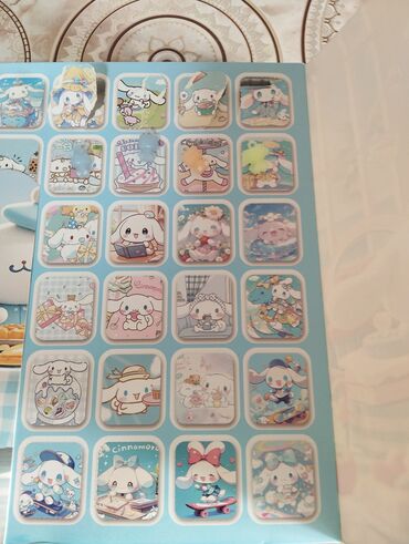 - Hər stikerdə Cinnamoroll və dostlarının müxtəlif illüstrasiyaları: oxuma, skate sürmə, desertlər, dəniz mövzusu, çiçəklər, bayram və gündəlik səhnələr.