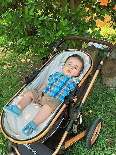 Belecoo uşaq arabası. 250 manata alınıb. 70 AZN satılır. Cəmi 1 il istifadə edilib. Qışlıq çxolu yazlıq tülü tutacaqları hər aksesuarı üstündedir. Kalyaska 3 növdə istifadə olunur. Yatmaq üçün geniş içi var. 6 ayından yarım oturacaq. 8.9 aydan tam oturacaq. Göründüyü kimi matrası var, qalın örtüyü var. Tam oturacaq olanda örtük çıxır forma dəyişir.