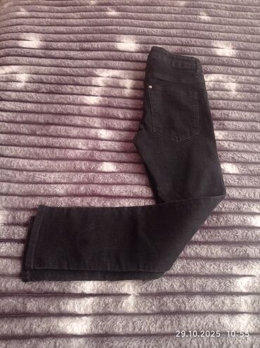 Oğlan üçün qara rəngli baggy jeans şalvar - Model: rahat “baggy” kəsim - Material: denim (uzanan elastik bel) - Rəng: tünd qara, yüngül solğun effekt və dekorativ cırıqlar - Bağlanma: iplə yığma (...