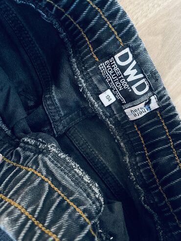 Oğlan üçün qara rəngli baggy jeans şalvar - Model: rahat “baggy” kəsim - Material: denim (uzanan elastik bel) - Rəng: tünd qara, yüngül solğun effekt və dekorativ cırıqlar - Bağlanma: iplə yığma (...