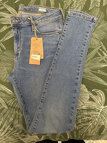 Çox az geyinilib 32 ölçü Tünd mavi rəngli cins şalvar - Klasik düz kəsim; gündəlik geyimə uyğun - Arxa tərəfdə bir ədəd paçalı cib, üzərində dekorativ tikiş i...