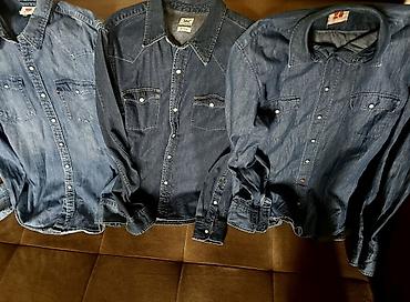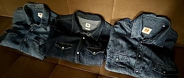 - Cins köynəklər: Levi’s, Lee və digər denim köynəkləri. İki qatlı sinə cibləri (qapaqlı və düyməli), sapaqlı-snap düymələr, klassik yaxa. Açıq, orta və tünd mavi tonlarda.