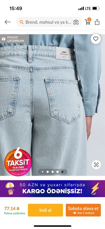 Zara Qadın slim cins şalvar 80 manata alınıb Ünvan:Bakı şəhəri
