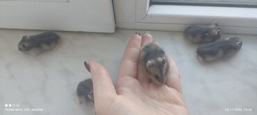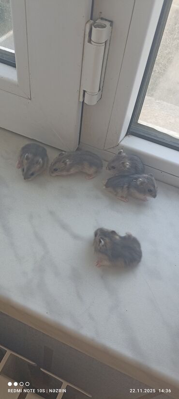 Cücələr – cırtdan hamsterlər (Djungarian tipli) - Rənglər: ağ, boz və qarışıq naxışlı bir neçə fərqli rəng. - Ölçü: kiçik, evdə saxlanma üçün rahat. - Xasiyyət: mehriban, sakit, asan əhliləşən; uş...