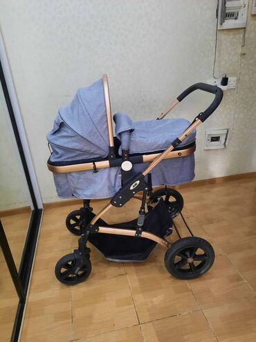 Uşaq arabası – beşik tipli az istifadə olunub əla vəziyyətdədir.ciddi alıcı narahat etsin.qis cexolu var. - Tip: Beşik/yataq bölməli uşaq arabası (lüks gondola tipli) - Rəng: Bej-krem parça, metali...